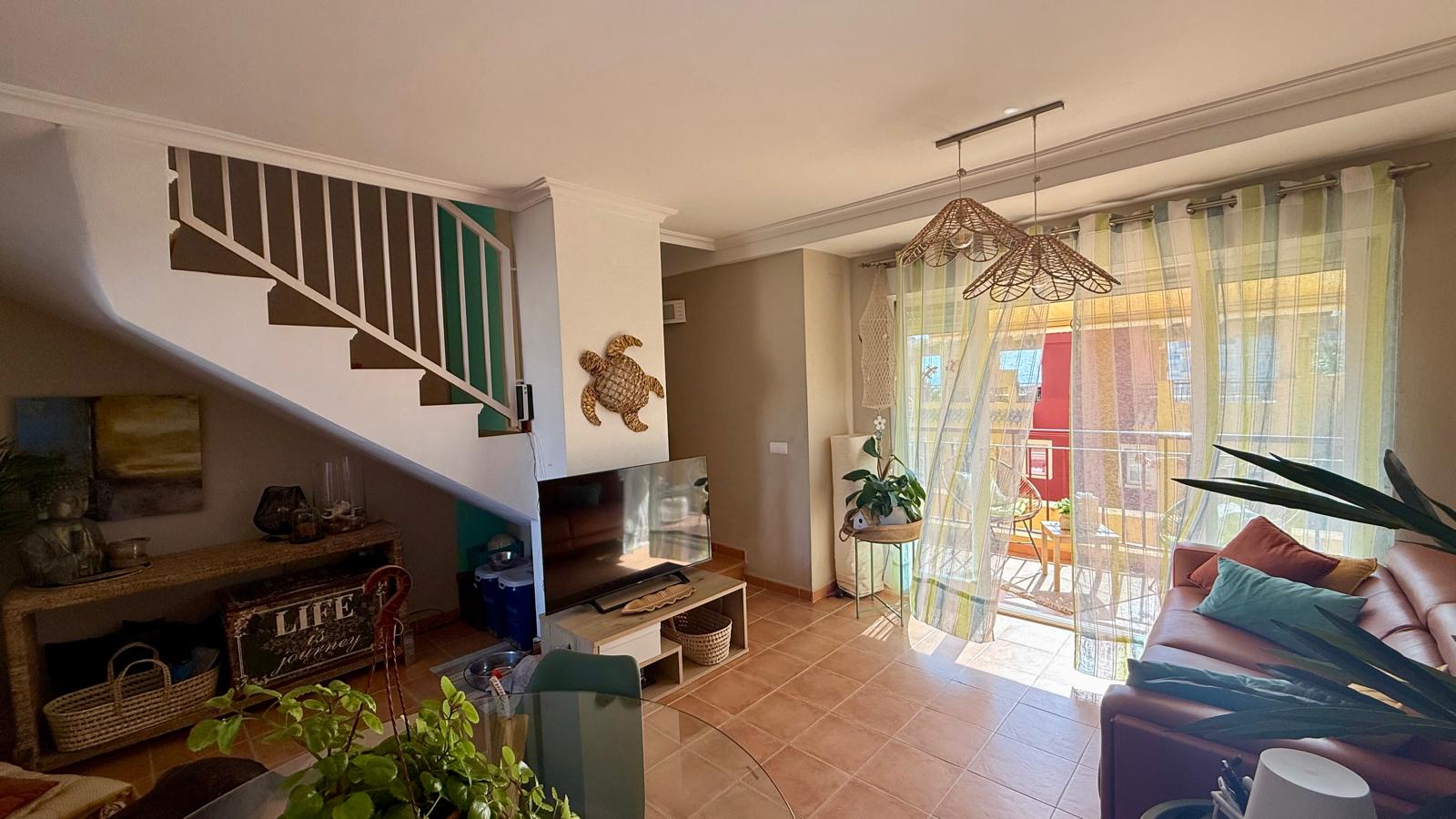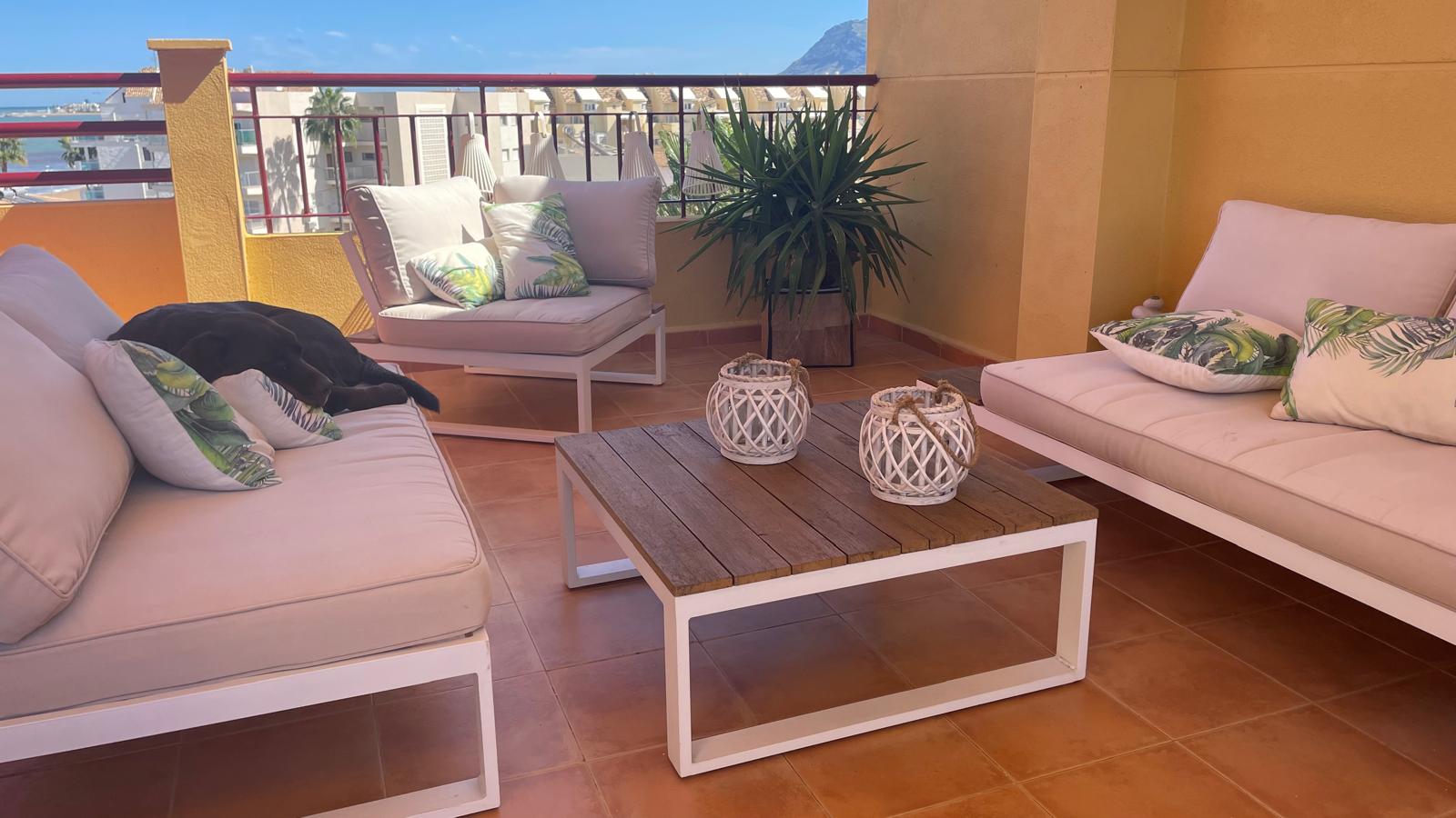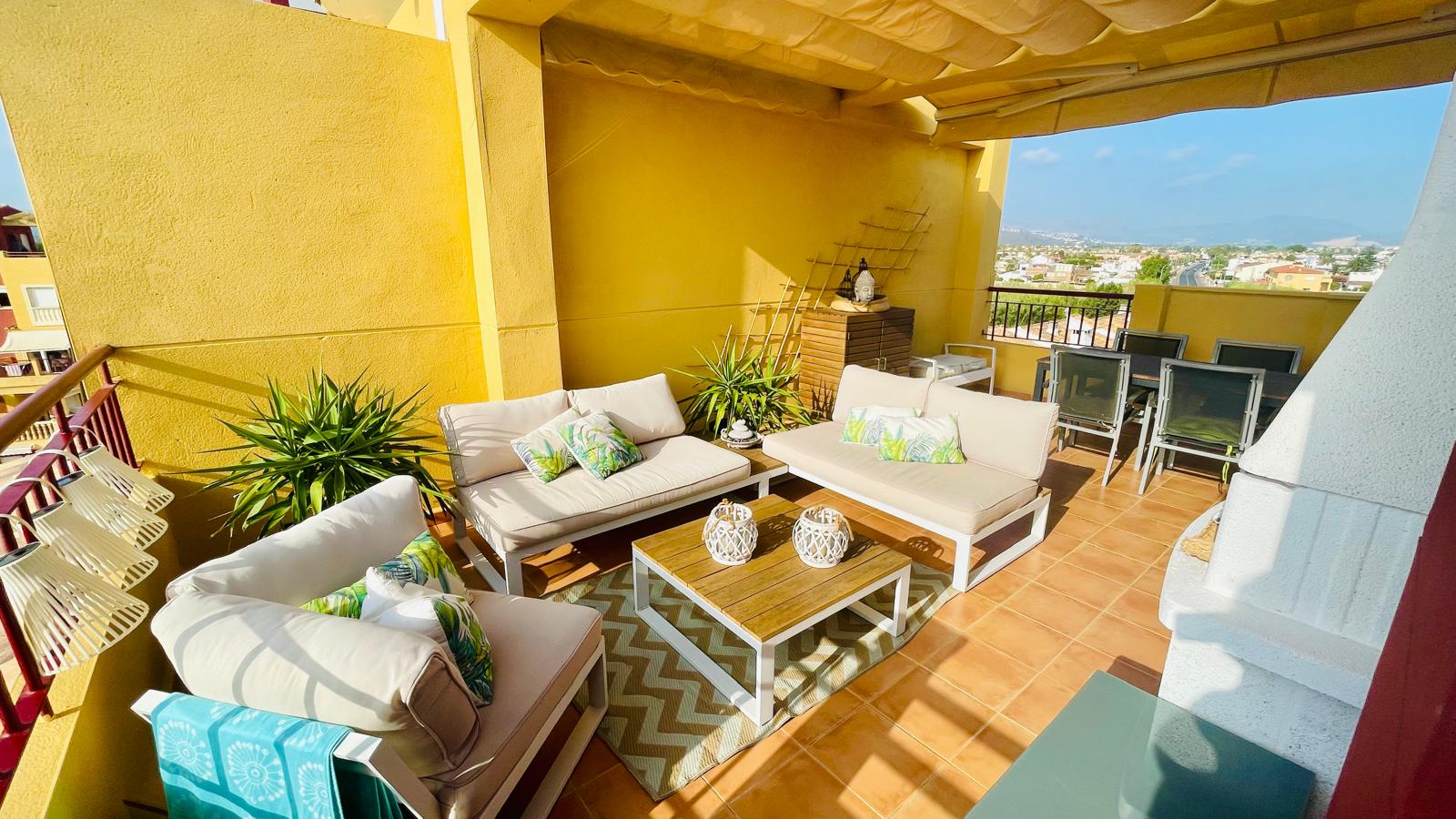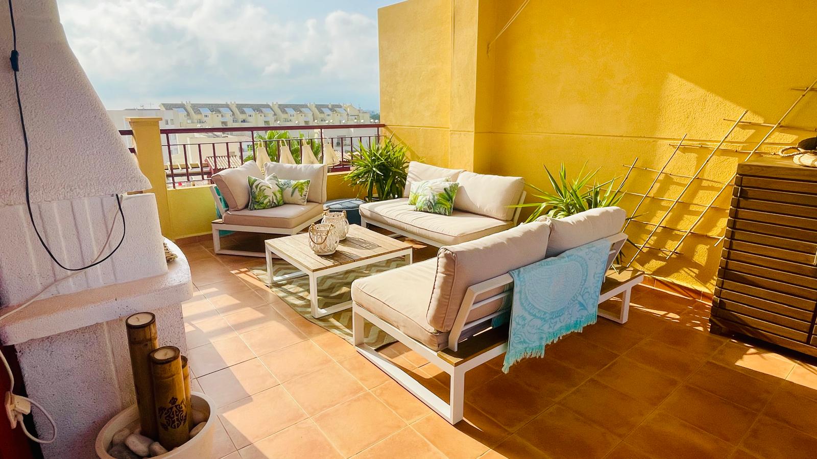 This attractive penthouse is located on the beachfront, in a privileged location. It has 2 bedrooms with fitted wardrobes, 2 bathrooms, a kitchen integrated into the living room, a living room with access to a perfectly located terrace with sea views, parking, air conditioning with heat pump, a large solarium with beautiful views in several directions and a barbecue.