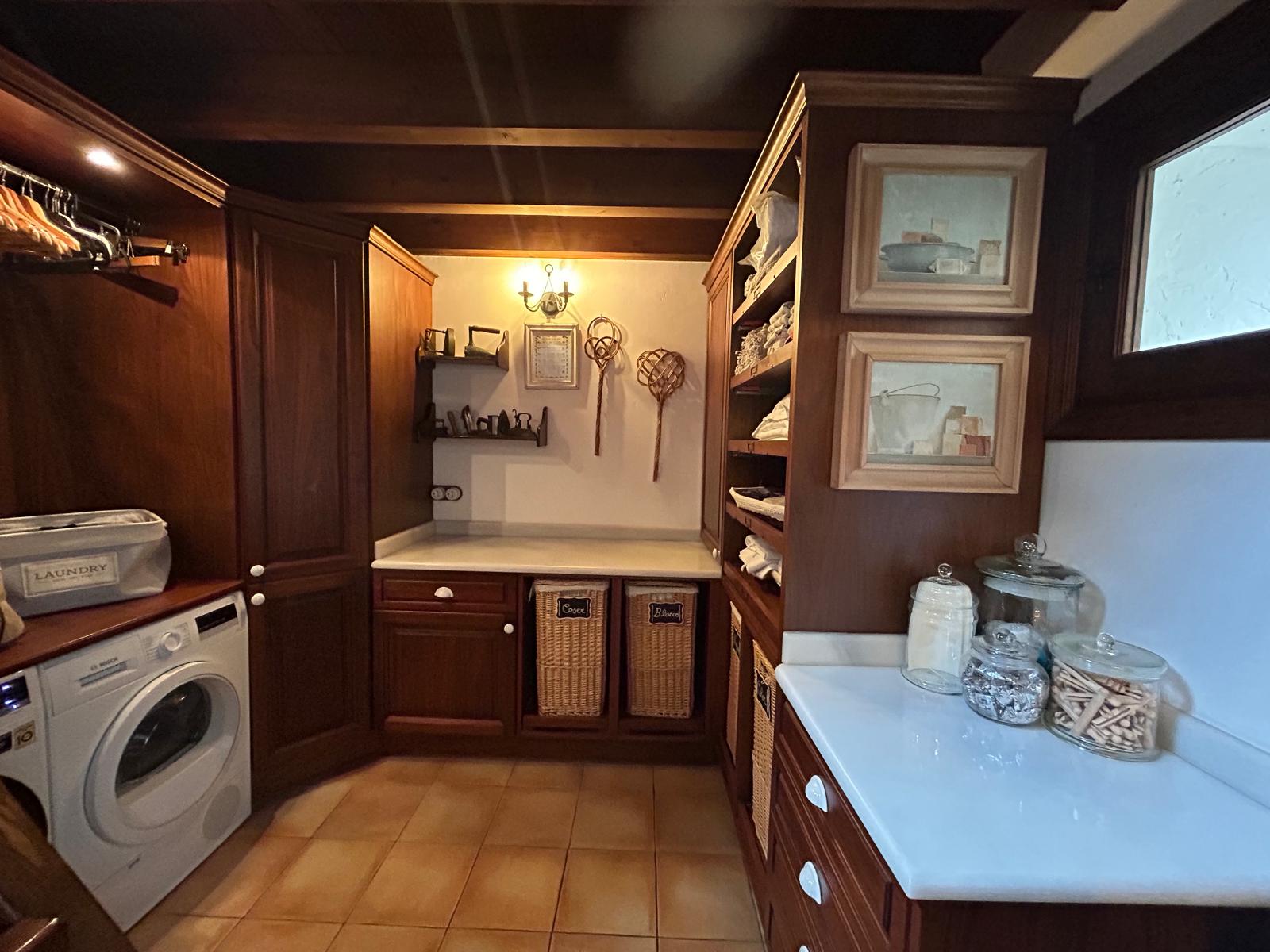One of the most distinctive features of this property is its exclusive south-facing patio, which hosts a magnificent swimming pool, a barbecue area, and a traditional wood-fired oven. There is direct access to the sauna and garage. In the basement, a unique wine cellar with a bar area provides the perfect space for private gatherings and celebrations.