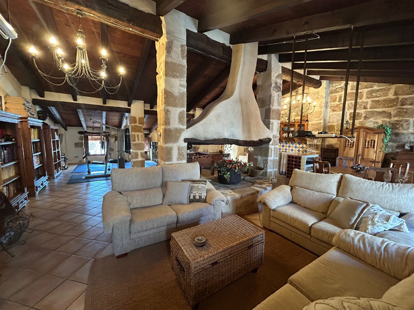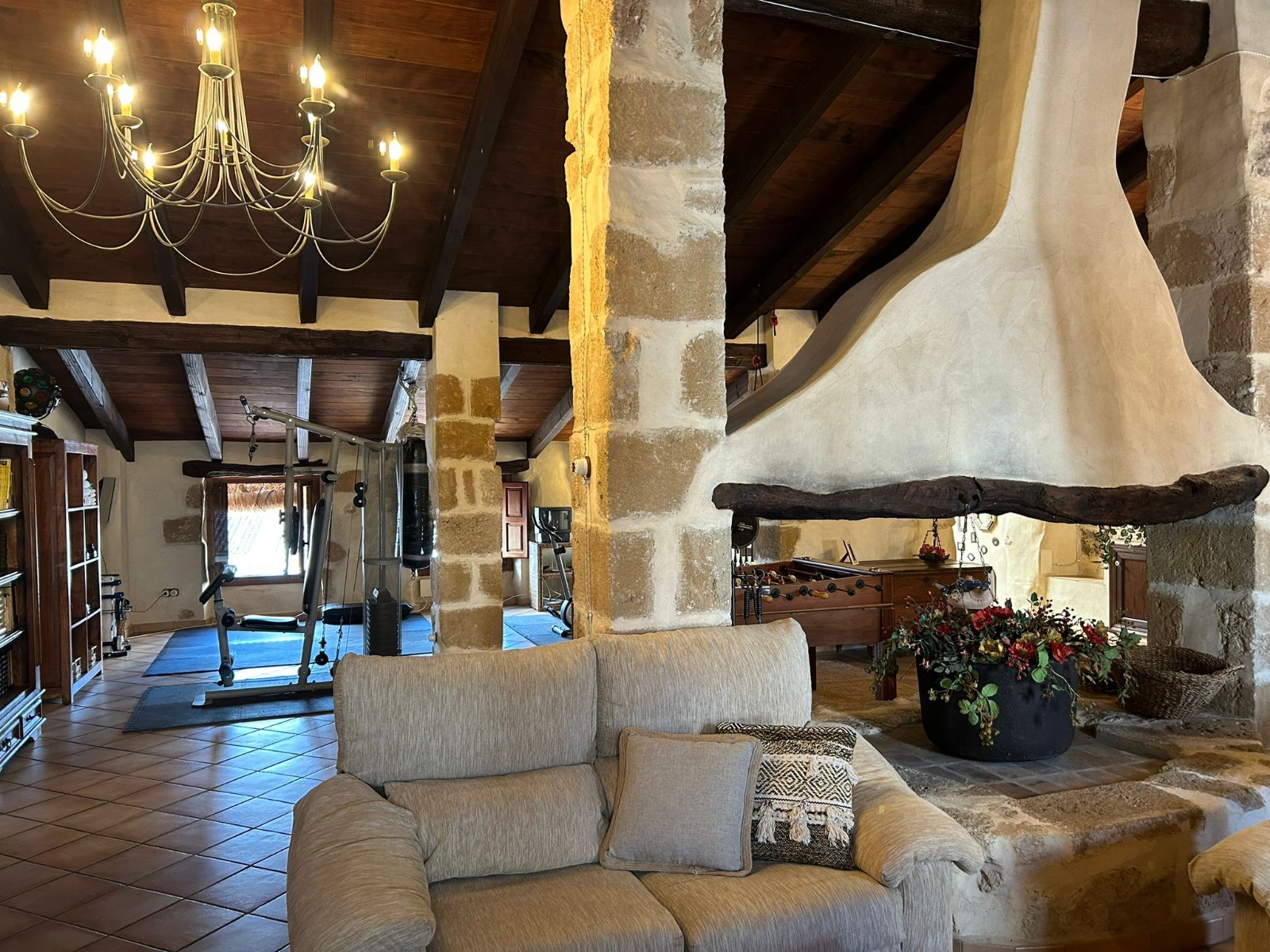 On the second floor, there is a spacious living area with a fireplace, an open kitchen, and a gym area. This level also offers the potential to create up to three additional double bedrooms with their respective bathrooms, allowing the home to adapt perfectly to each family’s needs.