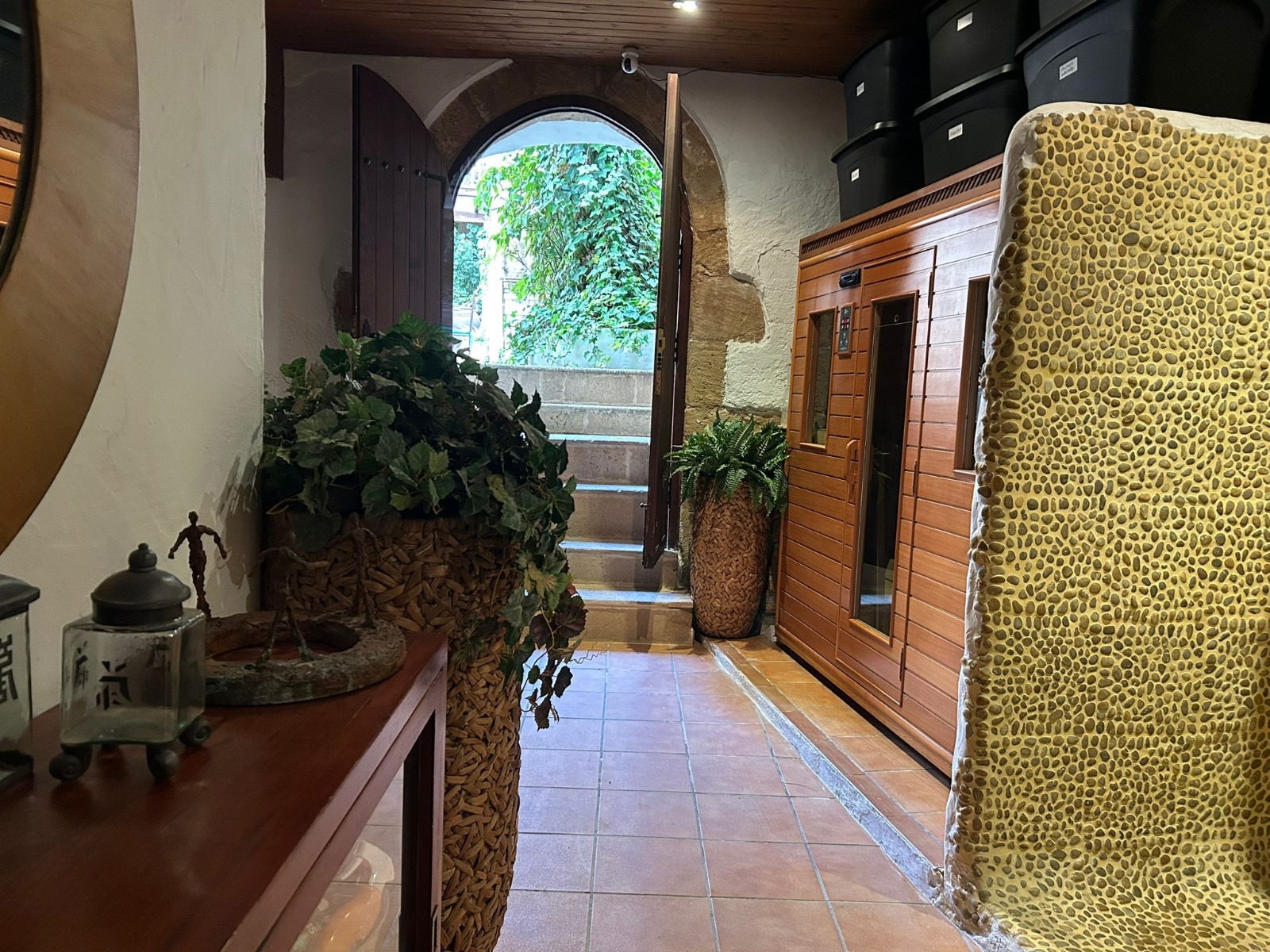 This majestic property stands out for its spaciousness, brightness, and welcoming atmosphere. Its high ceilings and original tosca stone walls, both inside and out, evoke the authentic Mediterranean character and rich history of the home. Located in the very heart of the old town, it enjoys an unbeatable location — ideal both as a private residence and for business purposes.